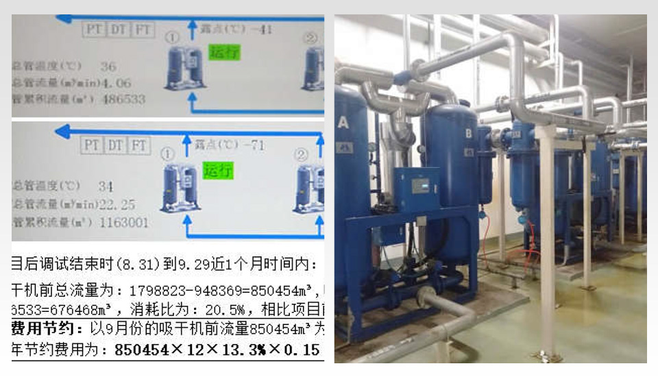 綜合生產(chǎn)中對氣體品質(zhì)的實際需求和源頭氣體的濕度情況,動態(tài)調(diào)節(jié)干燥時間,實現(xiàn)設備的“柔性”,達到“變頻”效果。